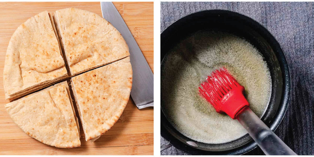 TIP: When you brush the pita with butter, use a light hand so the crackers are light and crispy.
