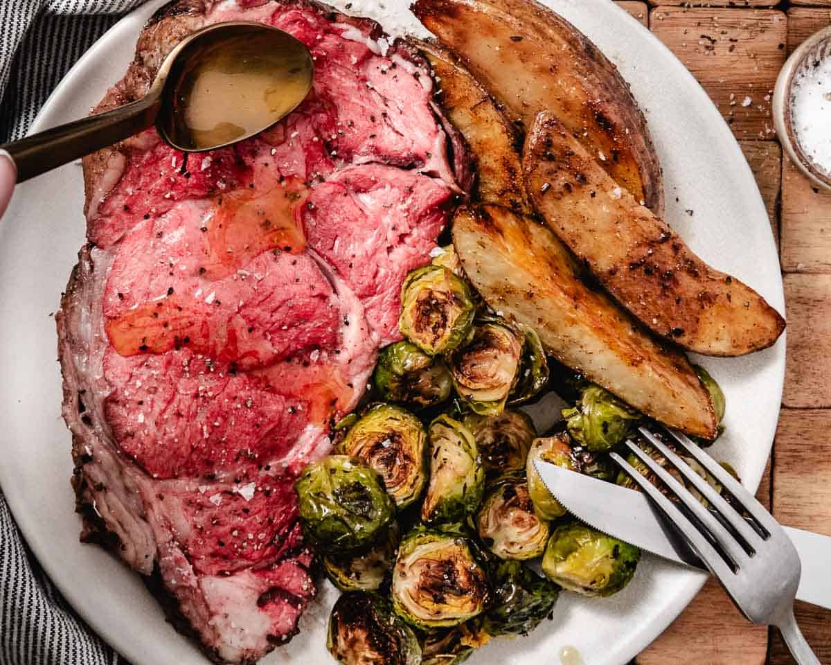 Learn how to cook a small standing rib roast at home. A small standing rib roast is manageable and easy to cook for perfect roast beef every time. This recipe shows how to cook the meat in a heavy skillet. This way, the outside browns well, and the inside stays tender and full of flavor.