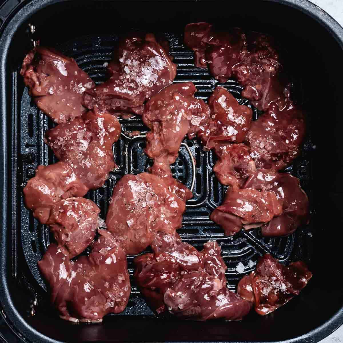 Place the livers in a single layer in the air fryer basket without crowding. You may need to cook them in batches depending on the size of your air fryer.